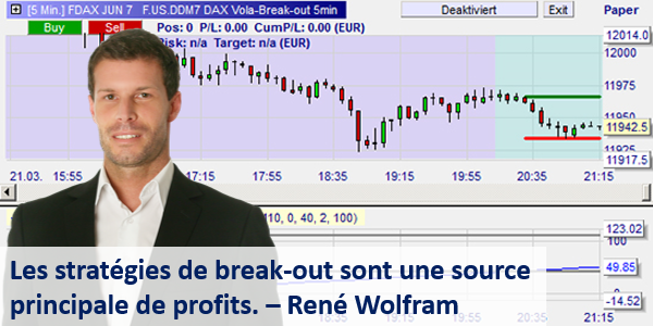 Deux des indicateurs propres à René Wolfram, WolVol et nBars, pour cette approche de trading. Les stratégies Break-out sont la principale source de bénéfices de ce trader.